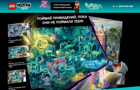 Для участия в акции: 1. Купи любой набор LEGO; 2. Зарегистрируй чек на сайте. Для участия в творческом конкурсе: - Сфотографируй одного из героев LEGO HIDDEN SIDE в центре мистической истории; - Выложи фото с описанием.