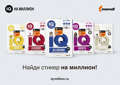 1. Покупай офисную бумагу IQ; 2. Регистрируй коды со стикеров на упаковках бумаги; 3. Выигрывай 250 000 рублей каждый месяц или Главный приз - 1 000 000 рублей.