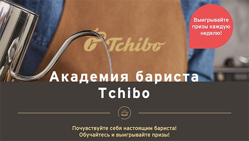 1. Зарегистрируйтесь в Академии Бариста Tchibo; 2. Пройдите курс кофейного мастерства от Бариста Tchibo; 3. Примите участие в еженедельном розыгрыше призов! Сроки проведения акции: - Общий срок проведения Акции: Акция проводится в период с 28 сентября 2021 года по 31 декабря 2021 года; - Выполнение заданий для участия в акции осуществляется в период c 28 сентября 2021 года по 21 ноября 2021 года.
