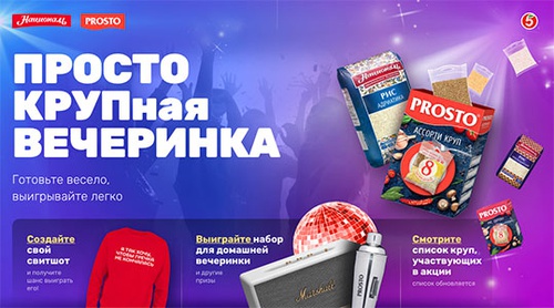 С 1 октября 2021 года участвуй в акции от Prosto и Националь. Покупай крупу, участвующую в акции, регистрируй чек и участвуй в розыгрыше призов.
