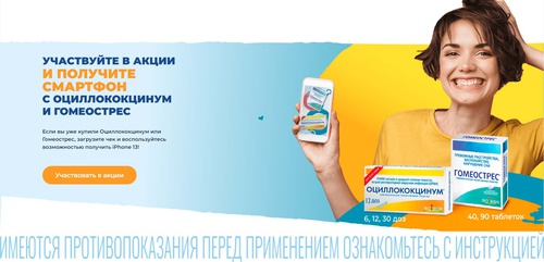 Участвуйте в акции и получите смартфон с Оциллококцинум и Гомеострес. Если вы уже купили Оциллококцинум или Гомеострес, загрузите чек и воспользуйтесь возможностью получить iPhone 13!