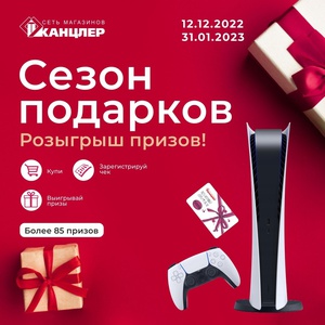 Акция «Сезон подарков» в сети магазинов «Канцлер»! Еженедельные розыгрыши с классными подарками.