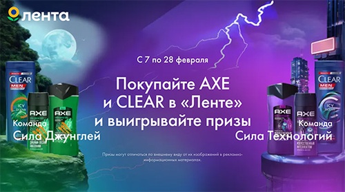 Выбери свою сторону силы! Покупай AXE и Clear в магазинах «Ленте» и получай призы каждую неделю.