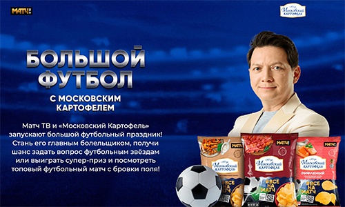 Матч ТВ и «Московский Картофель» запускают большой футбольный праздник! Стань его главным болельщиком, получи шанс задать вопрос футбольным звёздам или выиграть супер-приз и посмотреть топовый футбольный матч с бровки поля!