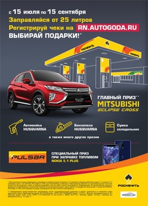 Мировой производитель техники для сада, леса и парка Husqvarna cовместно с компанией «Роснефть» и премией «Автомобиль года» объявляют о начале масштабной акции «Заправляйся и выигрывай!», действующей по всей стране, и дарят ценные призы для автомобилистов.